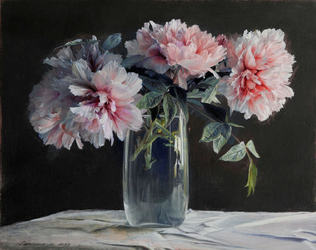 The theme Scazzosi favors is still life: cut flowers that nevertheless seem to retain their natural freshness, as if just picked from the garden and laid on a surface, awaiting placement in a vase. Particularly striking are his compositions featuring water and large glass vases, which showcase the artist’s skill in rendering reflections and transparencies. Mostly executed on wooden panels, Scazzosi’s paintings employ mixed media, primarily acrylics, pencils, and pastels.